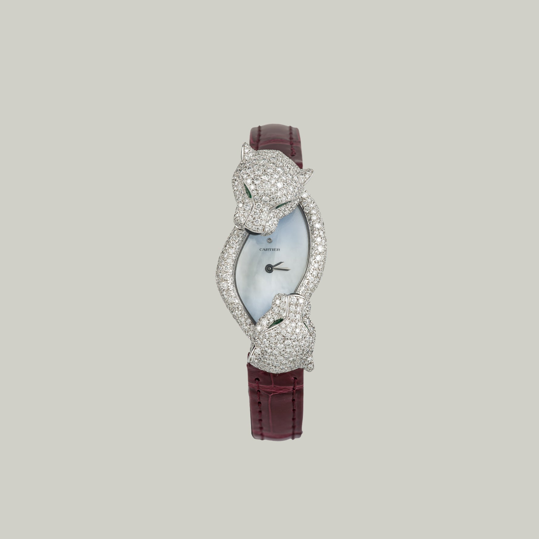 Accompanying Materials: Cartier International Limited Warranty card, certificate, instruction manual, setting tool, loupe, polishing cloth, additional strap and presentation box