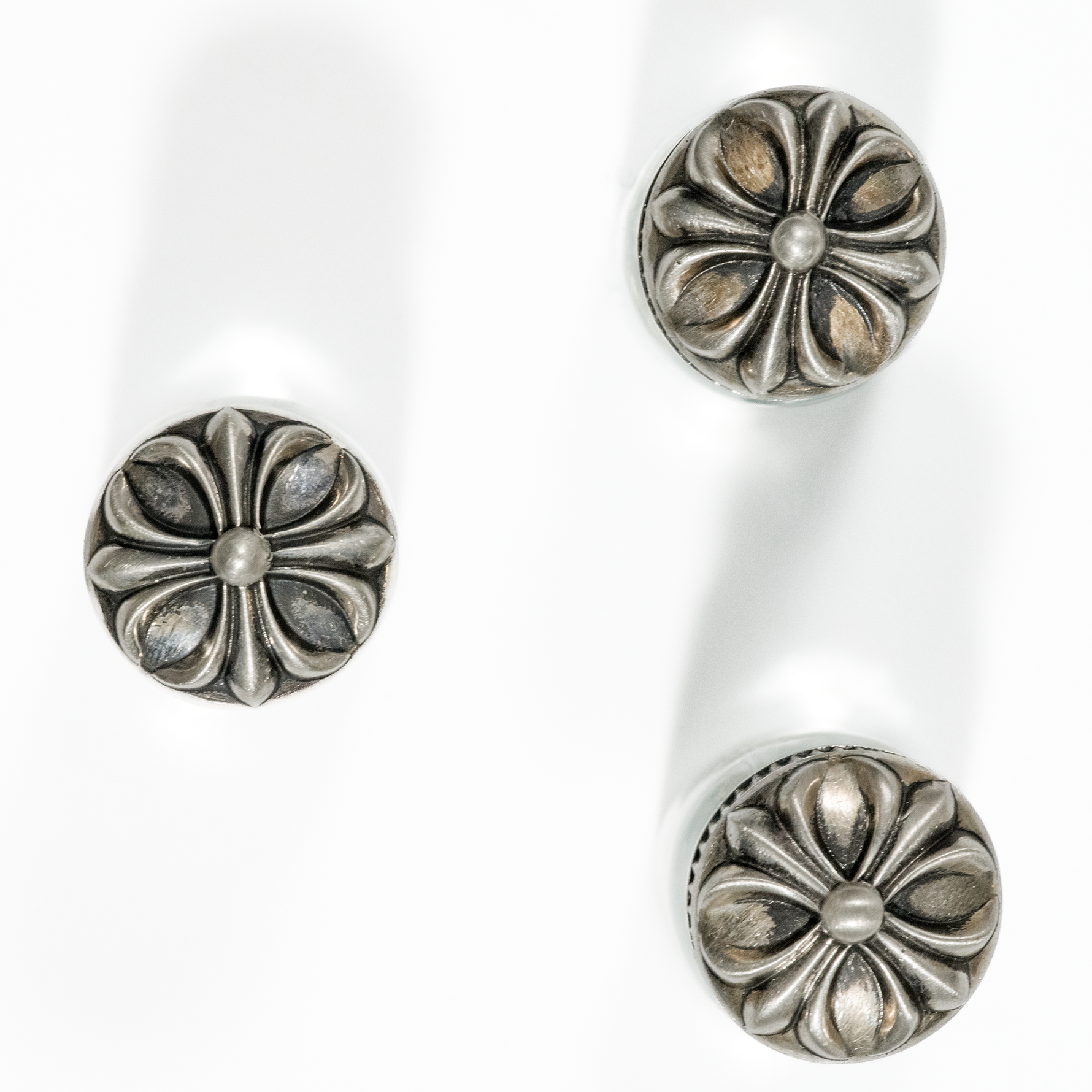 Offering a set of three rare Chrome Hearts Bubble Blowers to brighten up your day. Each bottle comes with its original 925 silver engraved cap and still retains its original liquid inside.