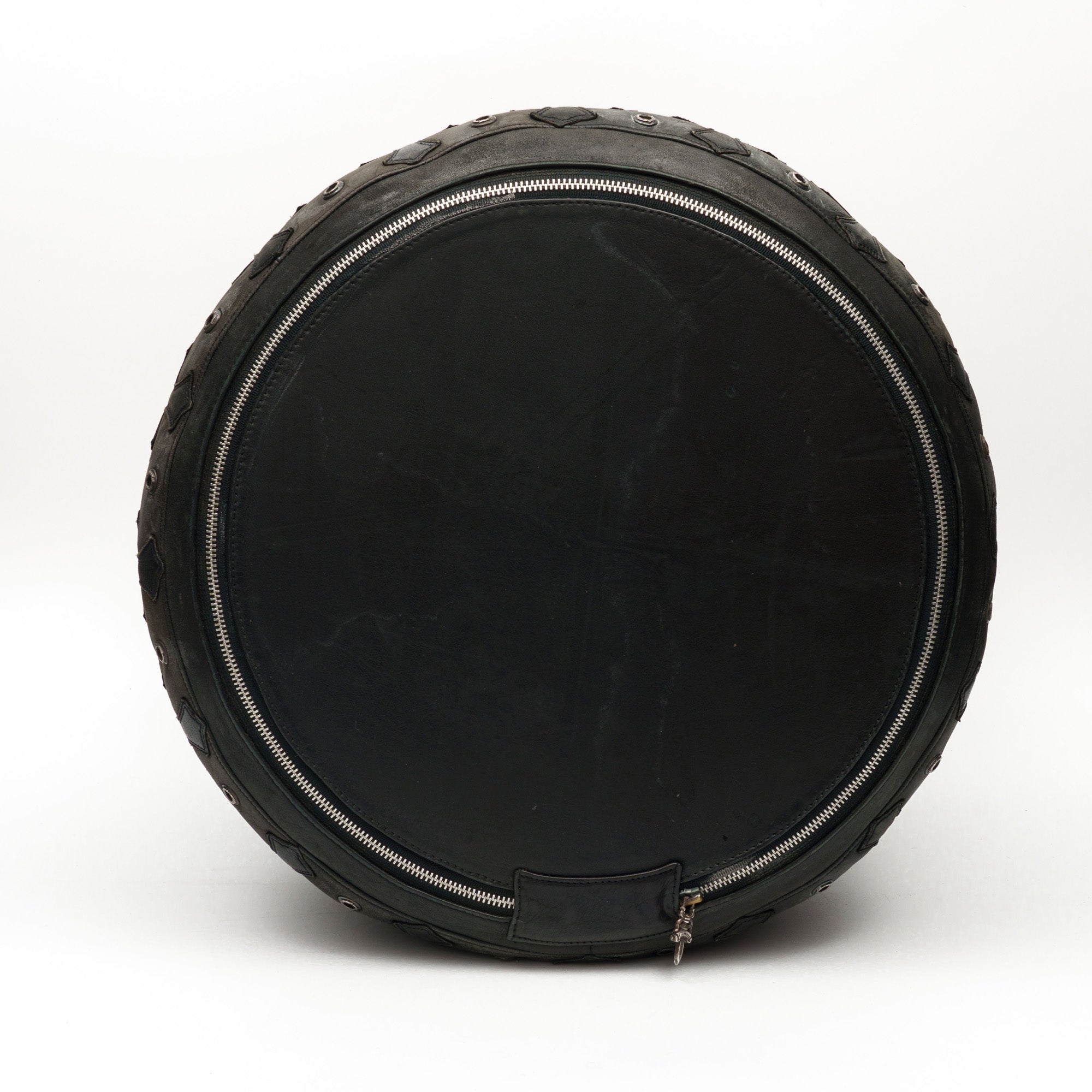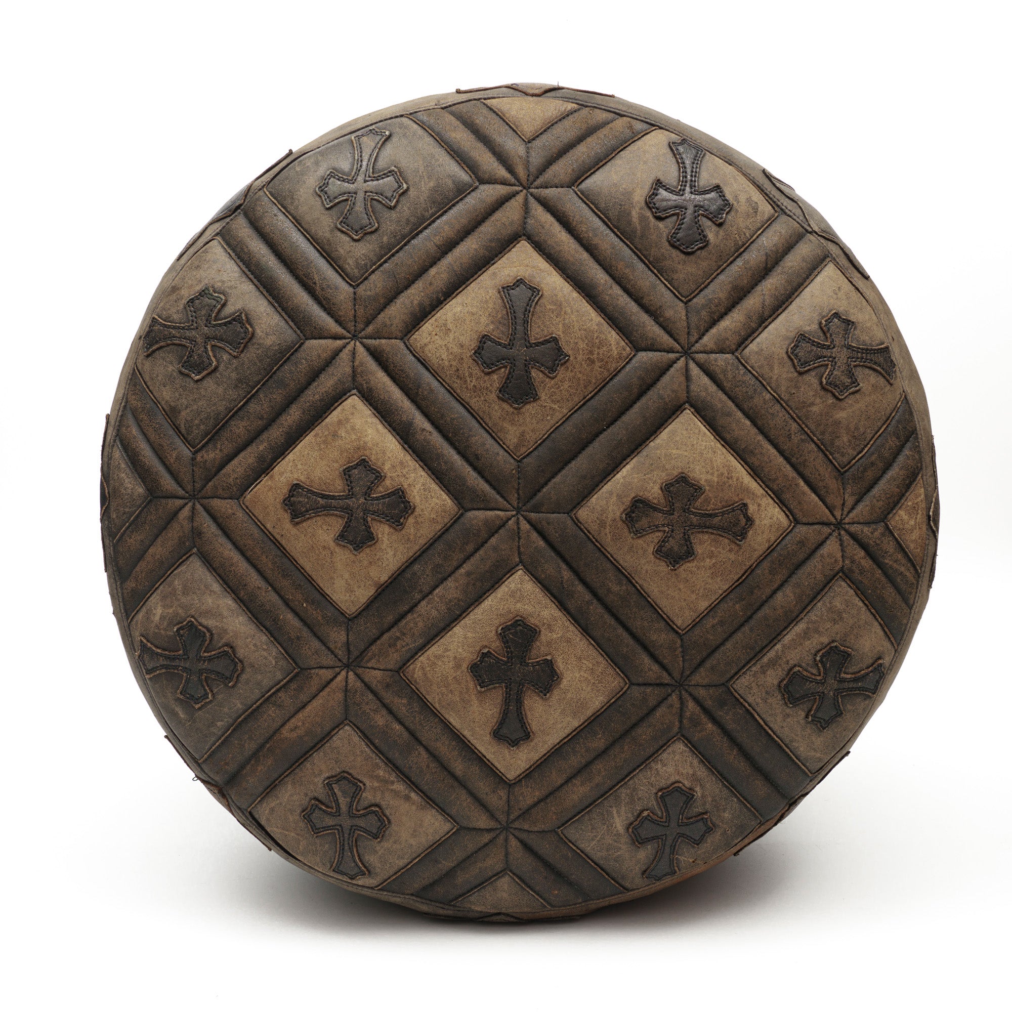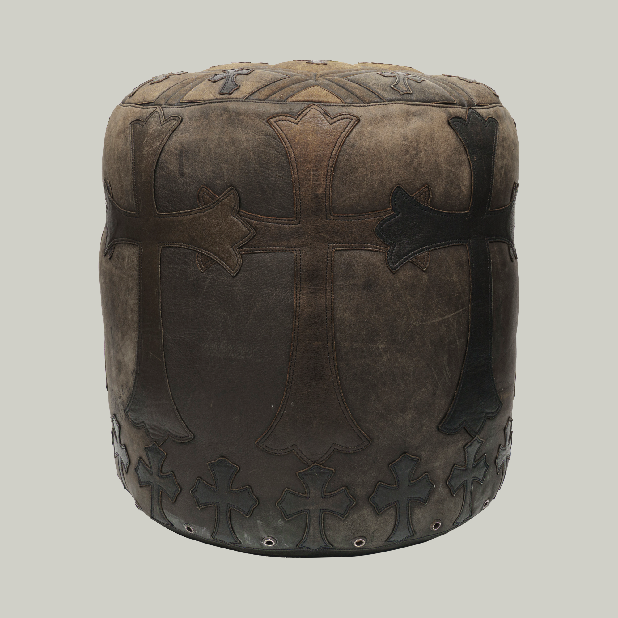 Chrome Hearts Brown Leather Sitting Stool Cross Patch