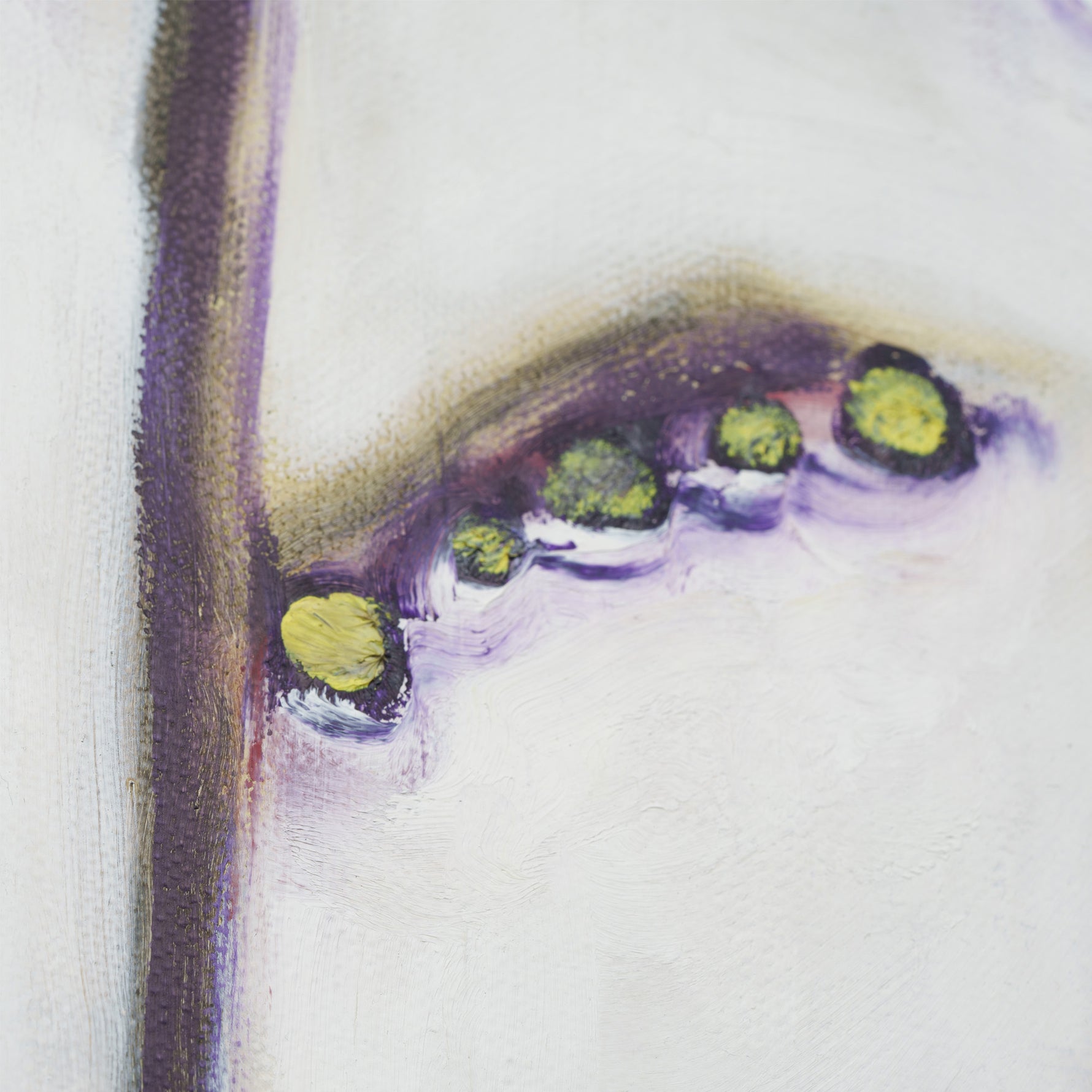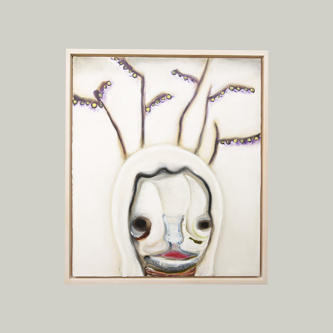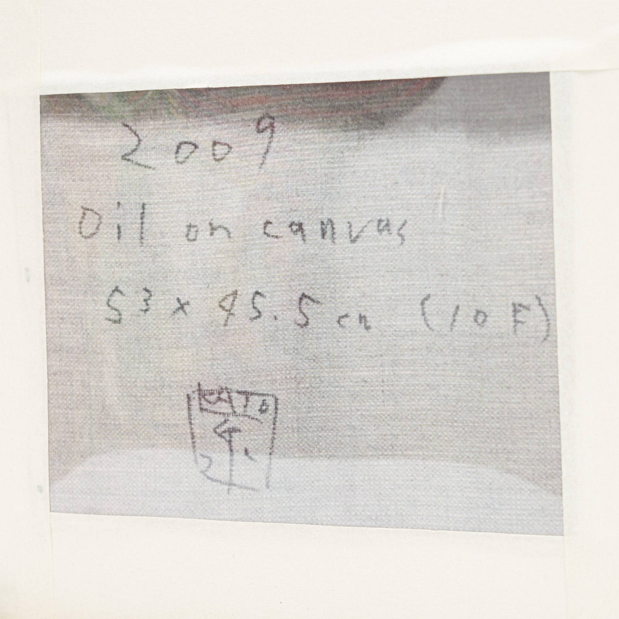 This artwork "Untitled" was part of a private collection acquired at a Sotheby’s auction in 2019. Kato's Untitled painting from 2009 illustrates his distinct technique of depicting characters in a liminal region between the physical and spiritual realms. The piece portrays a distinctive bulbous-headed creature, painted in Kato's usual vivid colors and smart brushwork often involving his own pair of hands.