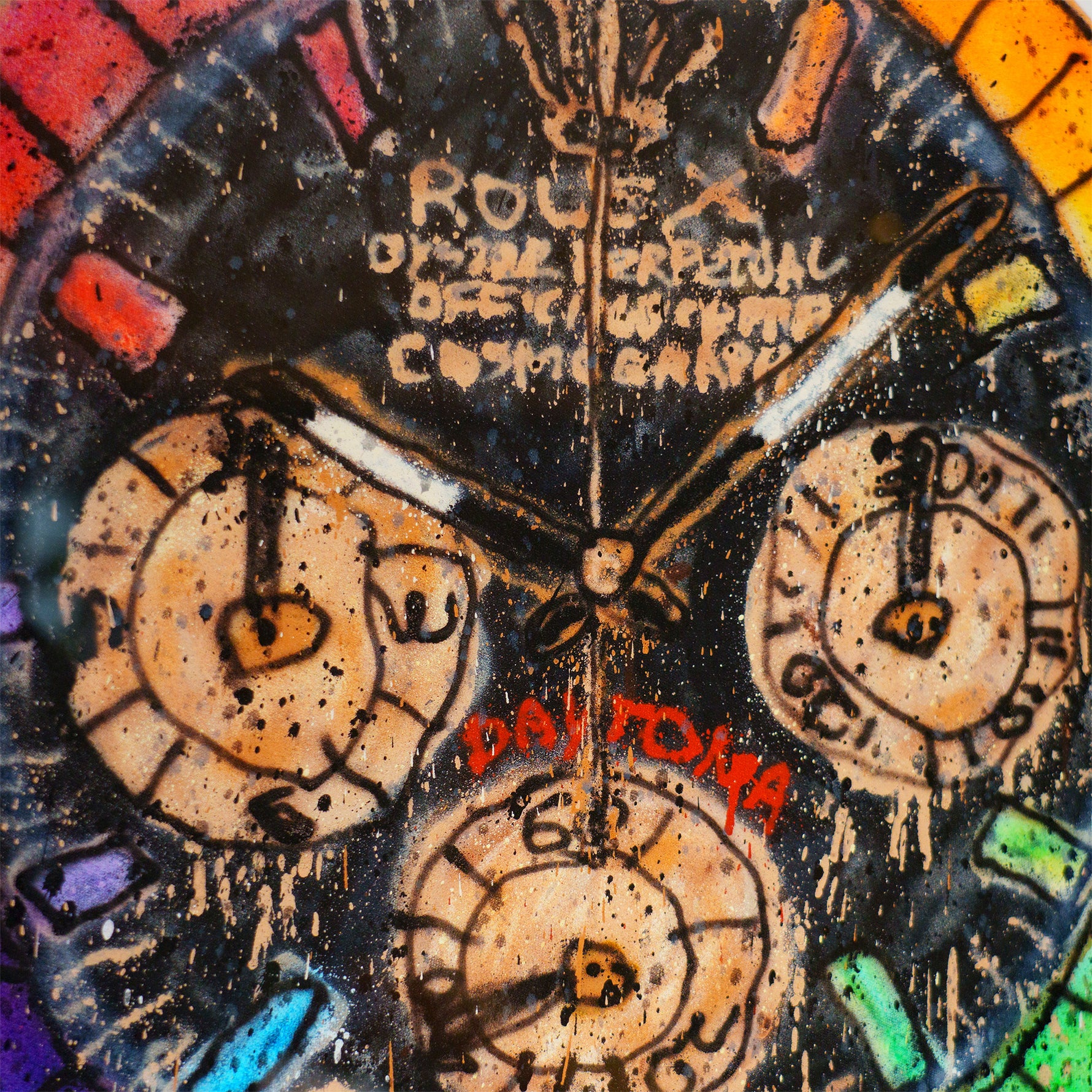 Madsaki’s artwork showcases his signature spray-painted 'hand drawn' style, precisely representing the latest Rainbow Daytona design, including the 36 baguette-set sapphires on the bezel.