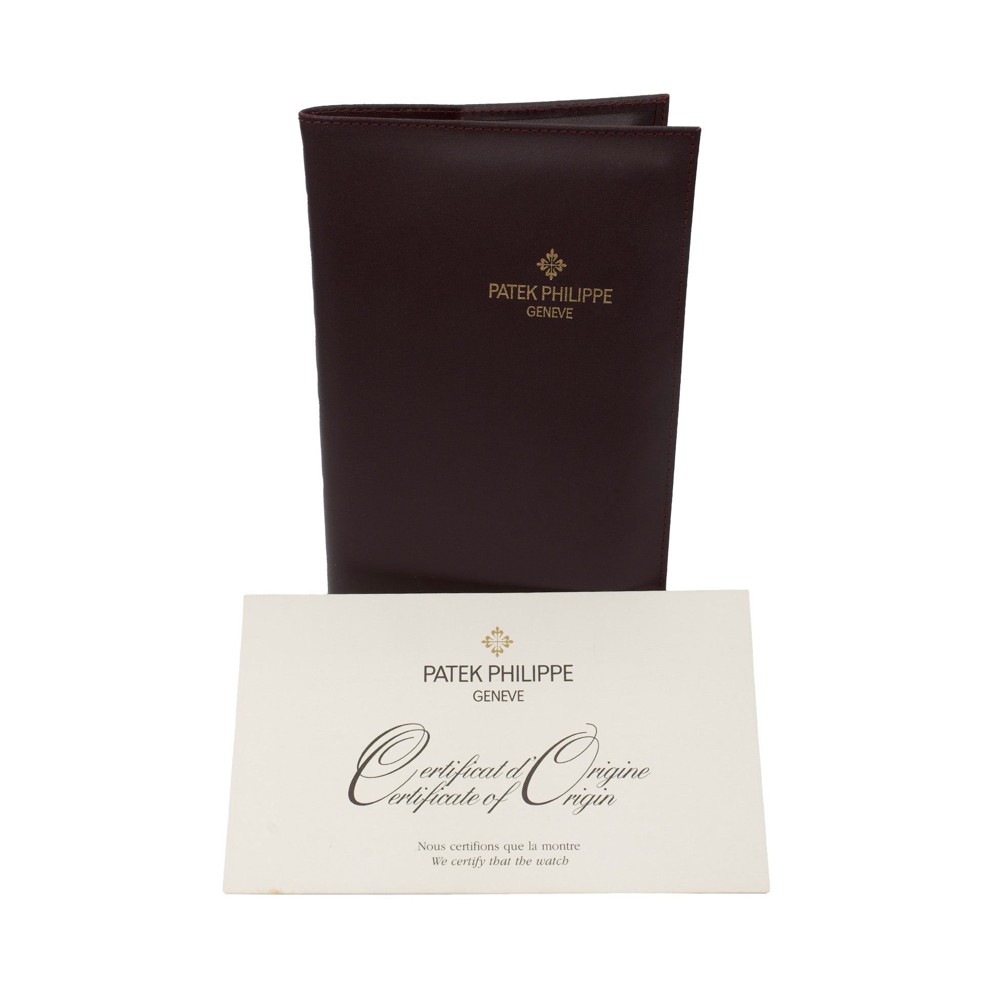 Accompanying Materials: Patek Philippe Certificate of Origin, instruction manual, product literature, leather folio.