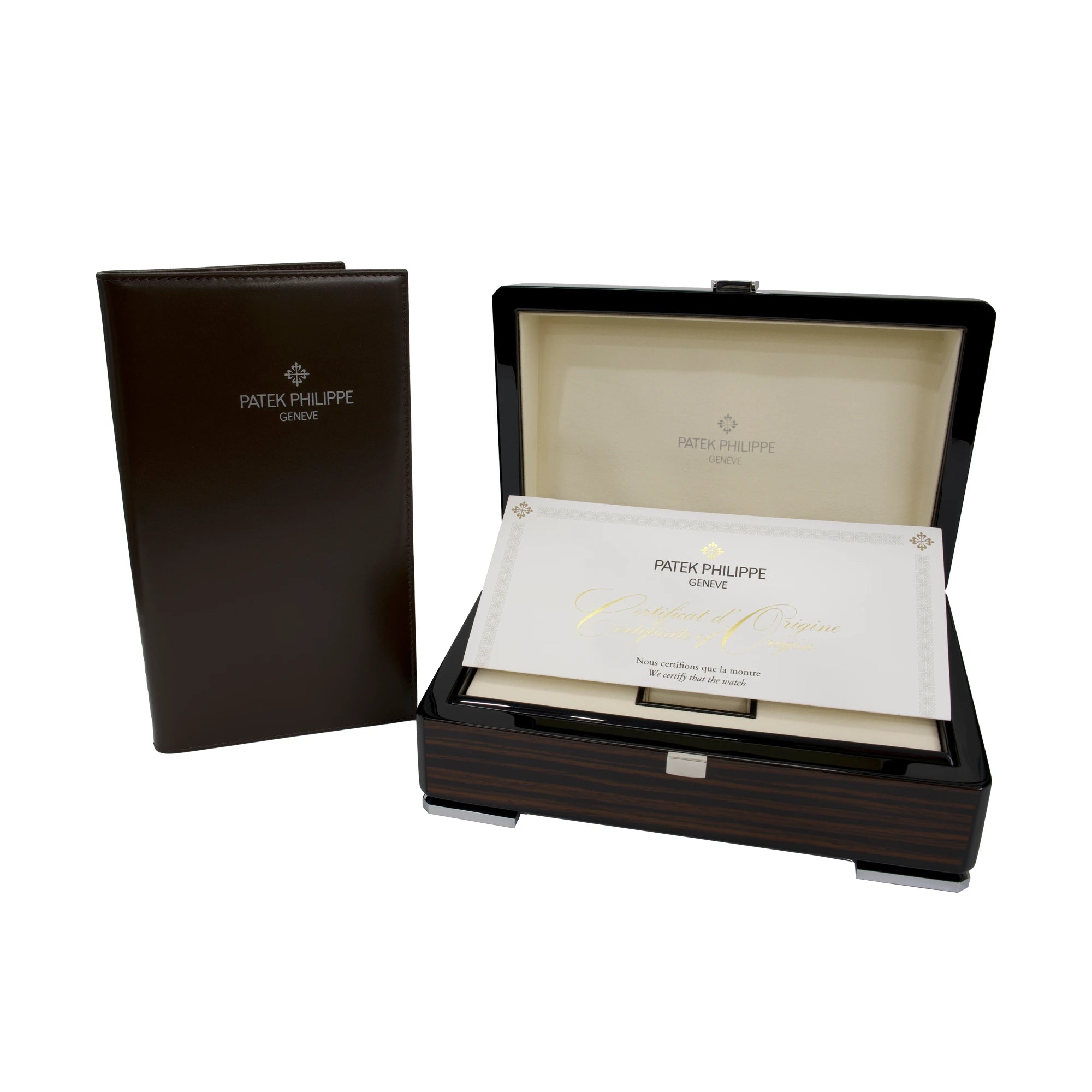 Accompanying Materials: Patek Philippe Certificate of Origin, leather folio, product literature, booklet and presentation box.