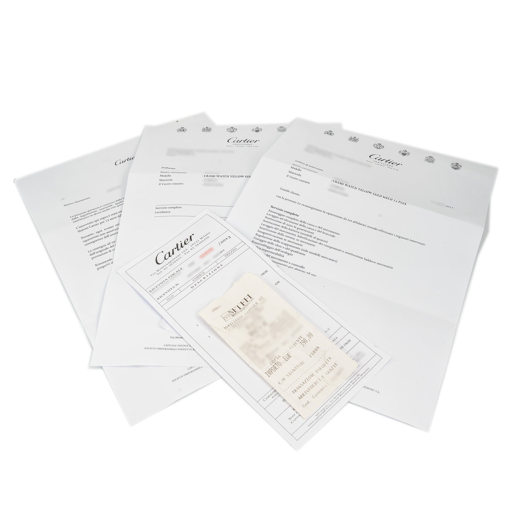 Accompanying Materials: Cartier service receipt, Cartier Service Invoice, Cartier Service breakdown paper