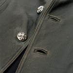 Chrome Hearts began cutting rings in L.A. in the latter part of the 1980s. Richard Stark, together with Leonard Kamhout and John Bowman initially started manufacturing leather riding wear. The designs were very original: a combination of leather and sterling silver; very soon, the shoes became quite popular. This innovation was the genesis of taking that luxury brand global.