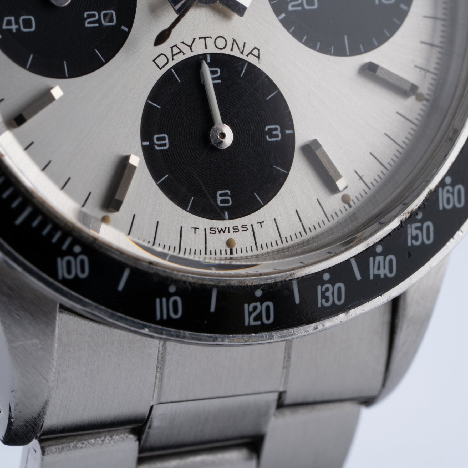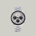 Features: Silver dial with black registers
